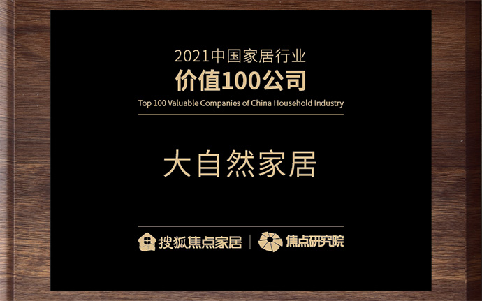 大自然榮獲“2021中國家居行業(yè)價值100公司”|見證原力,用綠色守護生活
