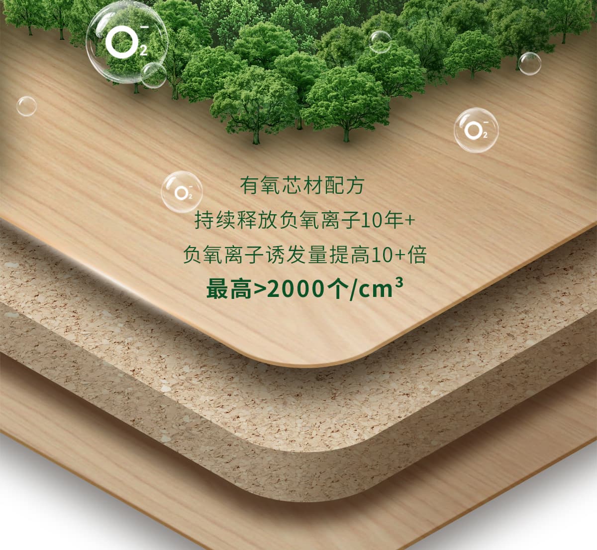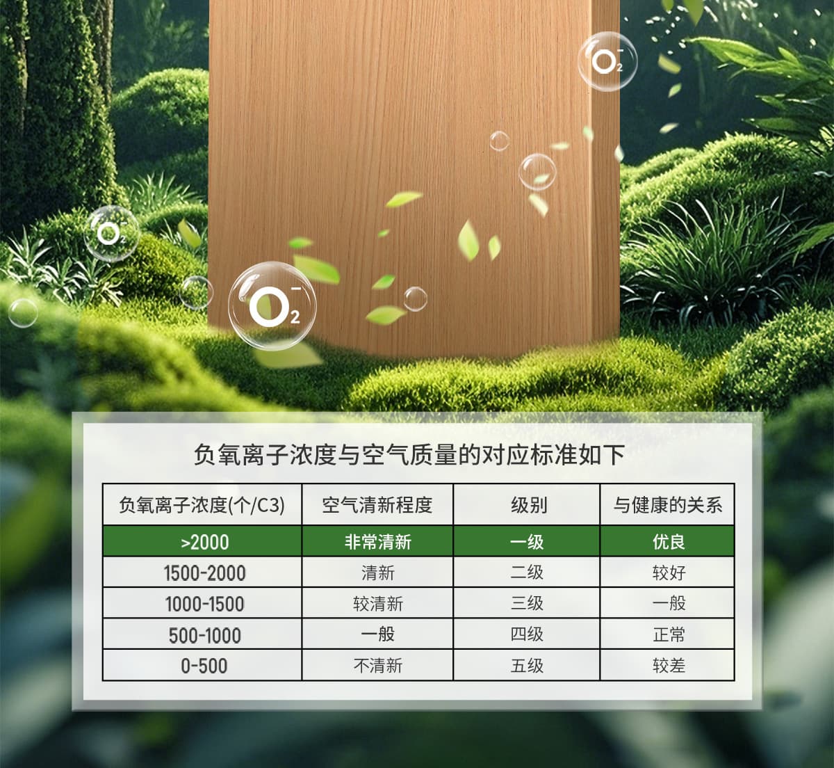 誘發空氣負離子量 比基礎環境提高10倍+