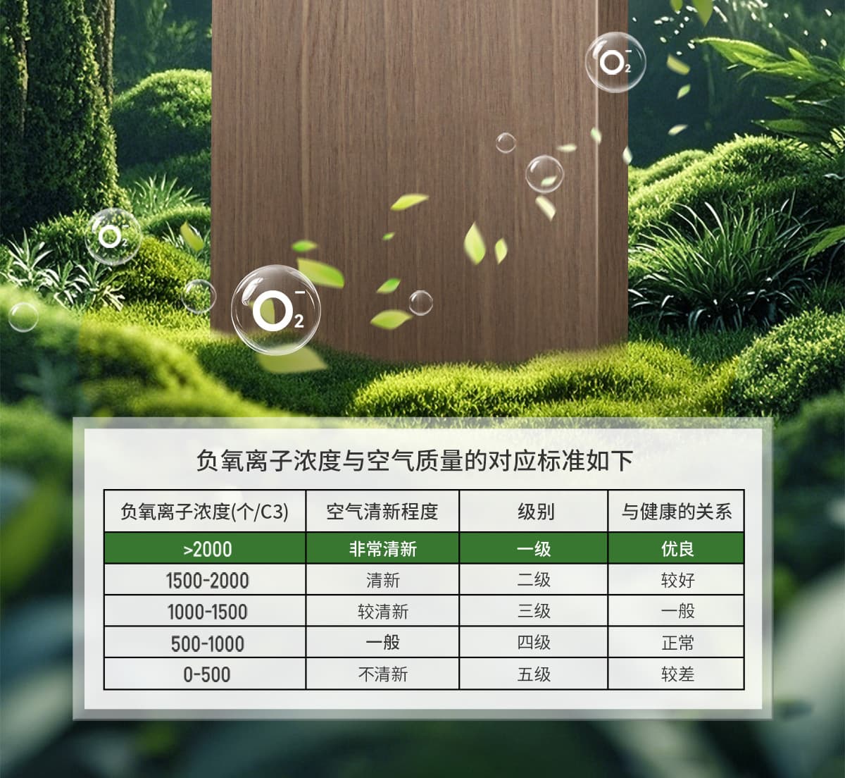誘發(fā)空氣負(fù)離子量 比基礎(chǔ)環(huán)境提高10倍+