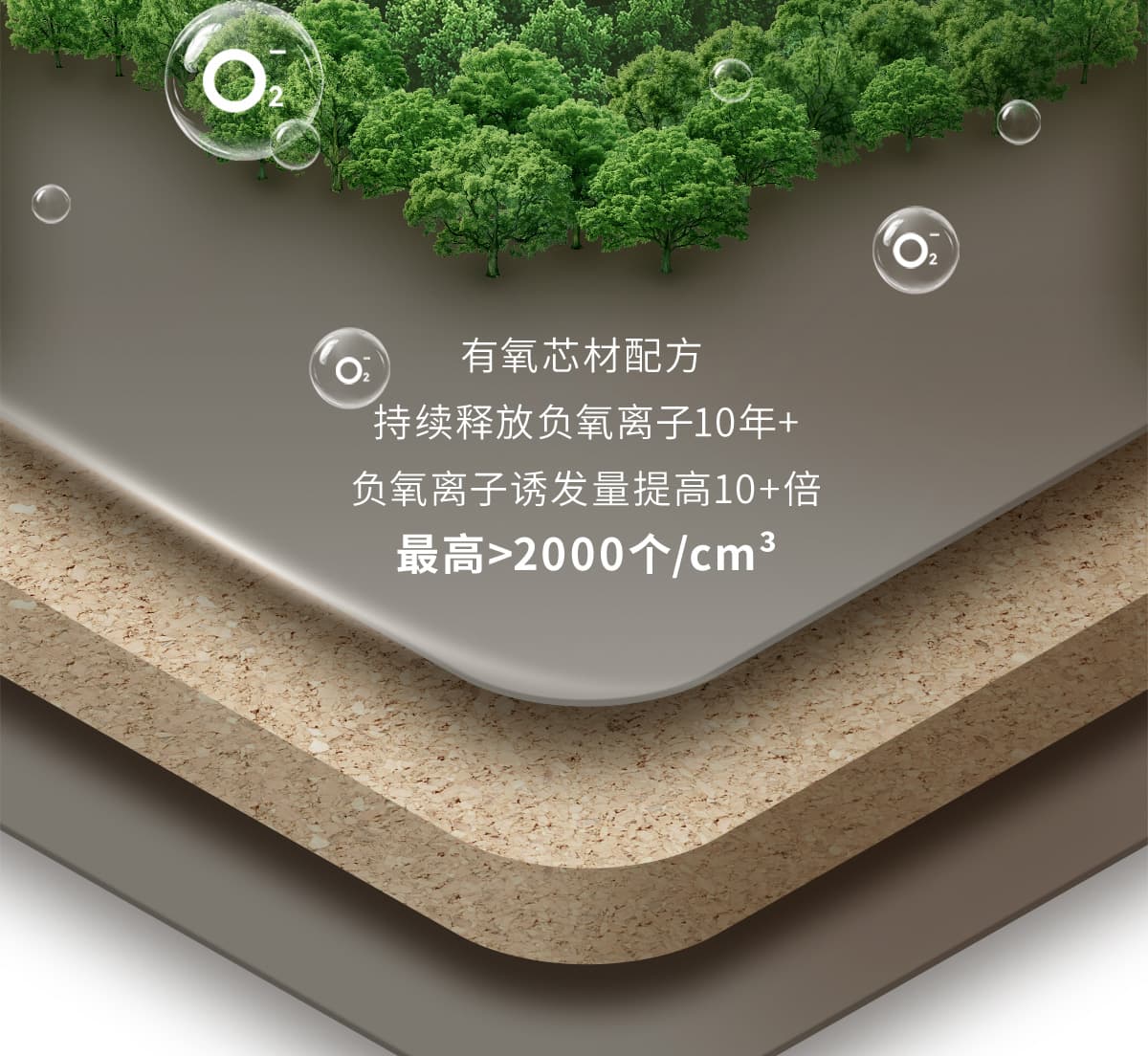 誘發空氣負離子量 比基礎環境提高10倍+