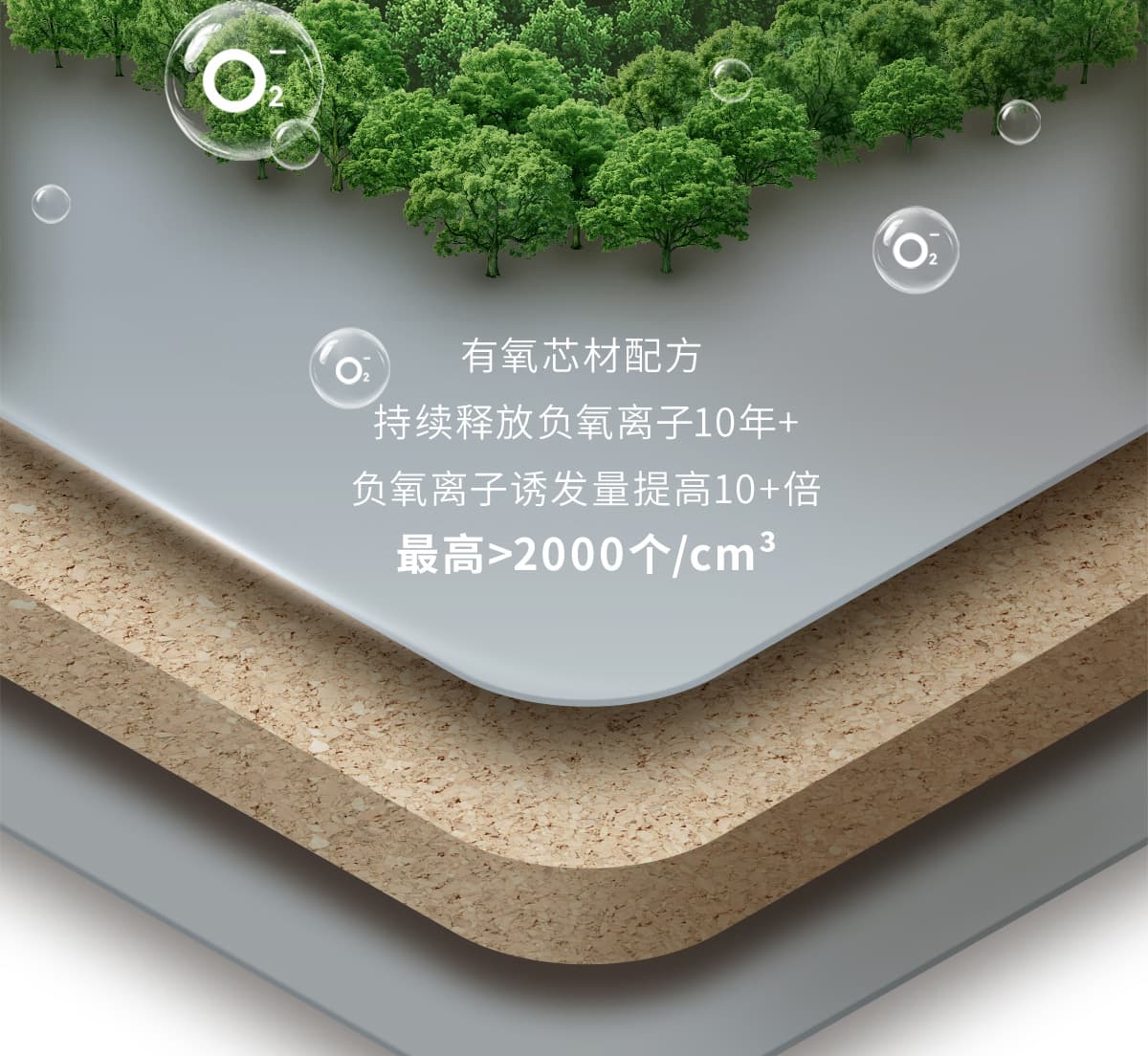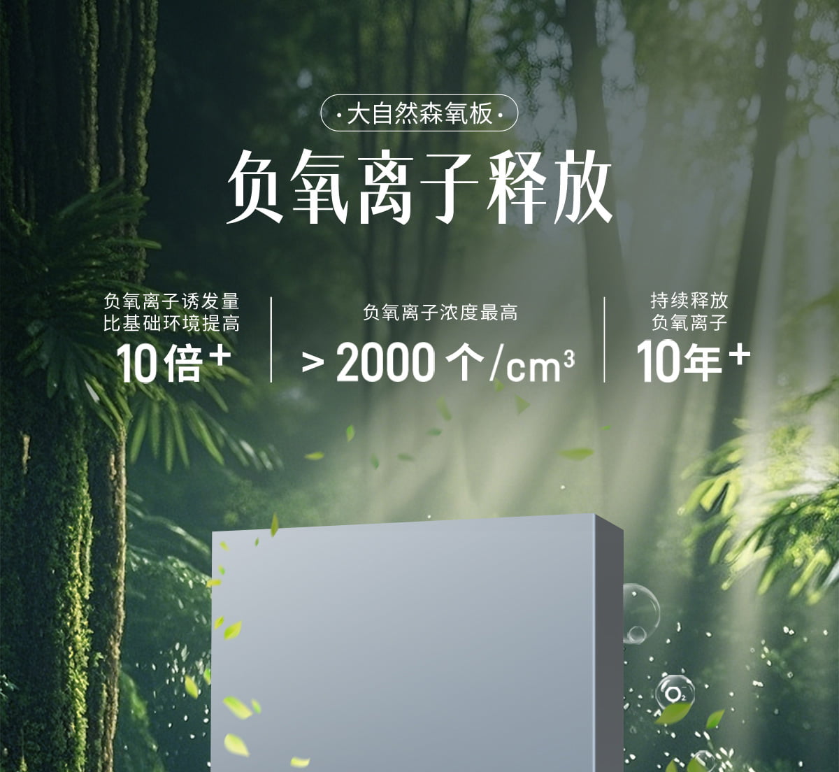 誘發空氣負離子量 比基礎環境提高10倍+