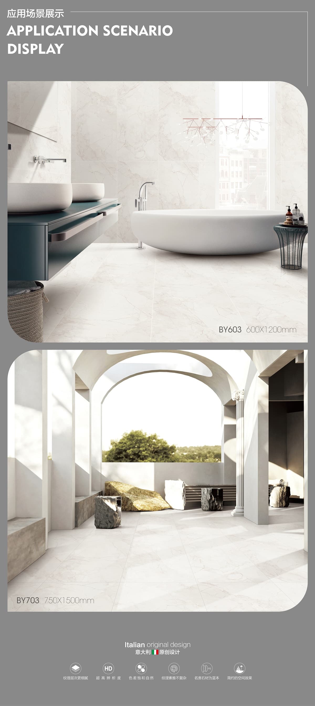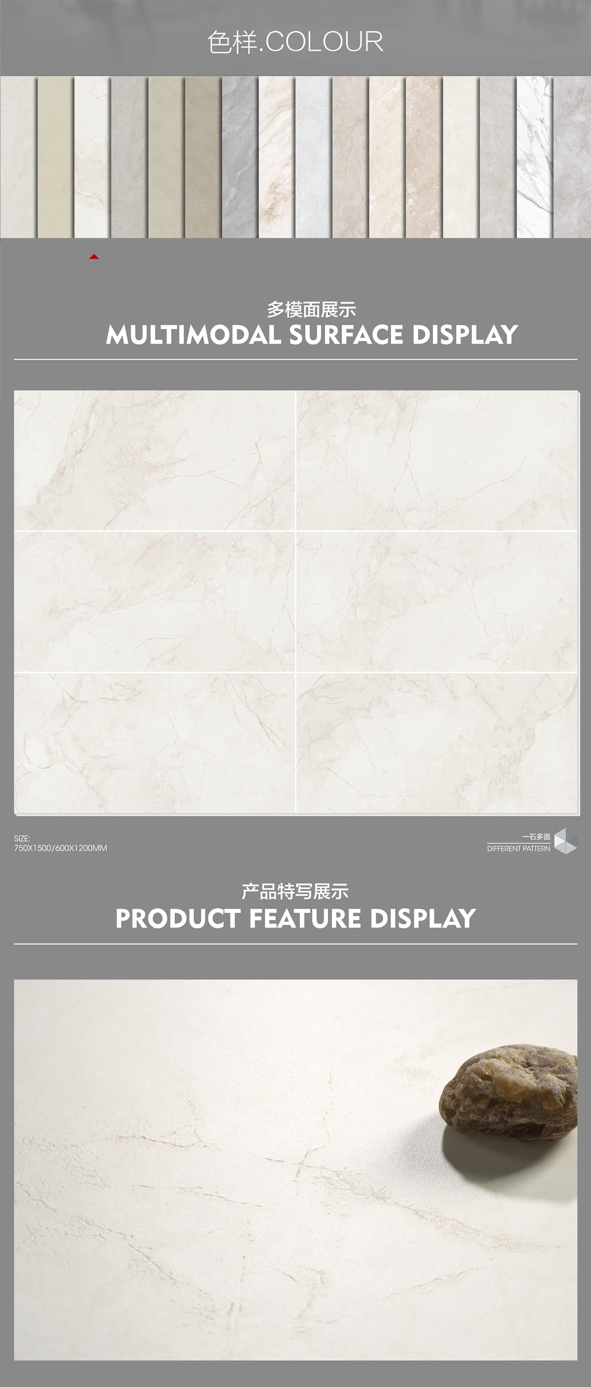 產品特性 表面柔和,防污效果強,防滑R10指標高,抗折強度好